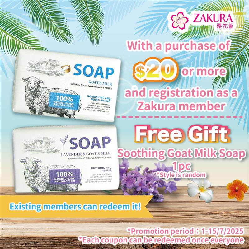 *Redemption Terms: With a purchase of $20 or more and registration as a Zakura member (applicable to new members and existing members), customers can redeem one gift with this voucher