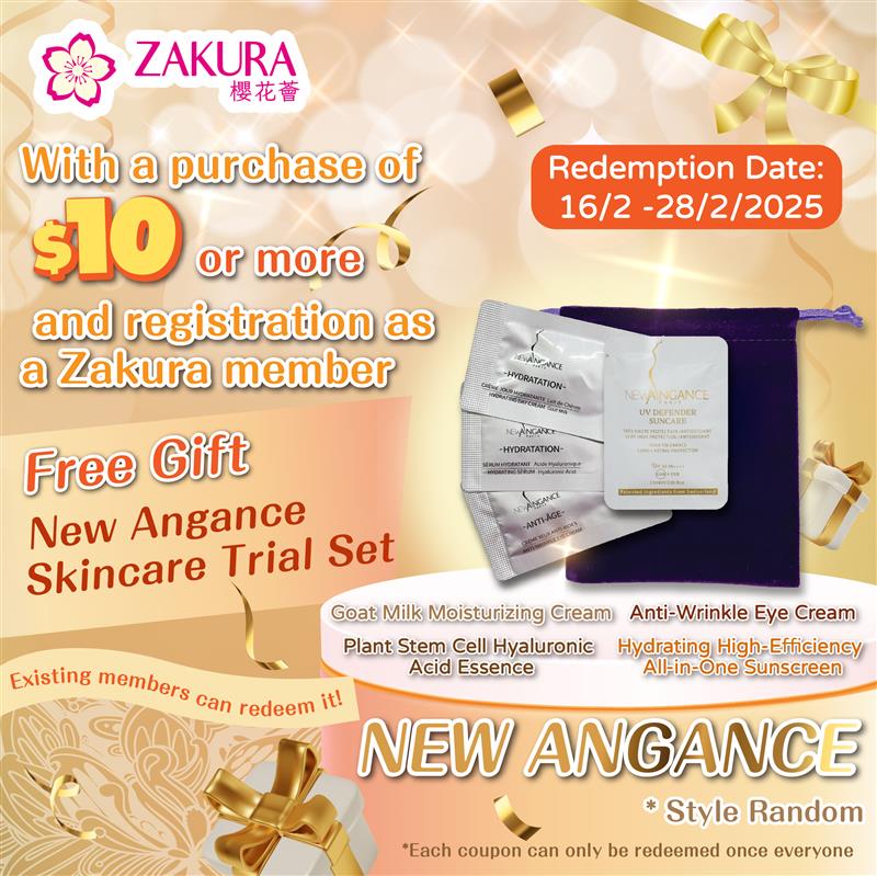 *Redemption Terms:With a purchase of $10 or more and registration as a Zakura member (applicable to new members and existing members), customers can redeem one gift with this voucher