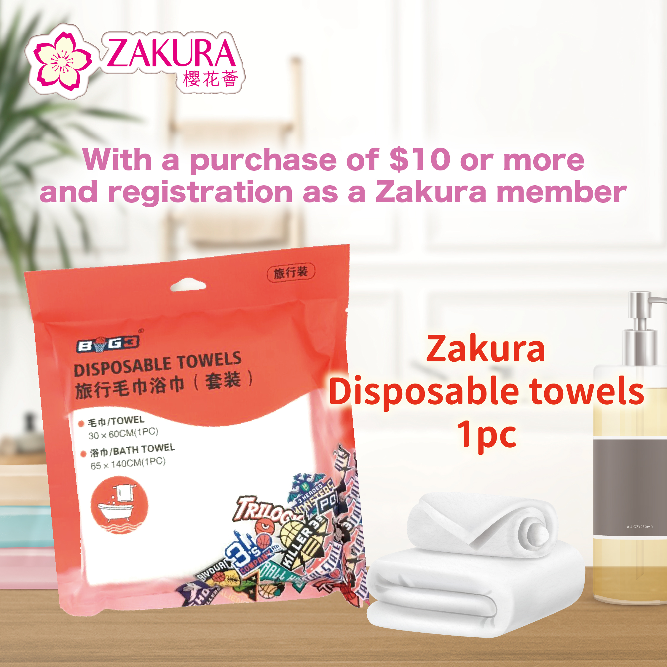 1. Zakura Disposable Bath Towels Set 1 pc