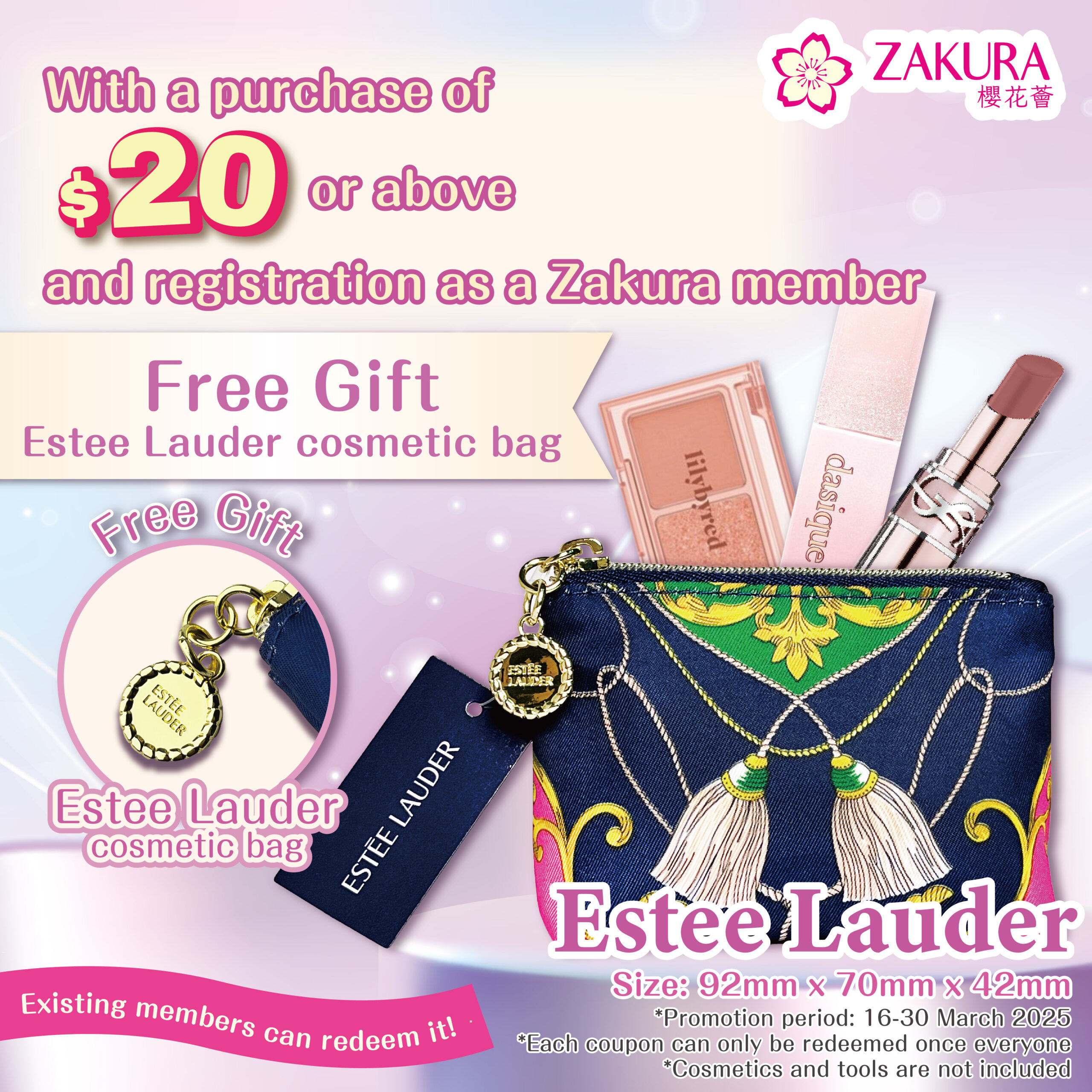 *Redemption Terms: With a purchase of $20 or more and registration as a Zakura member (applicable to new members and existing members), customers can redeem one gift with this voucher